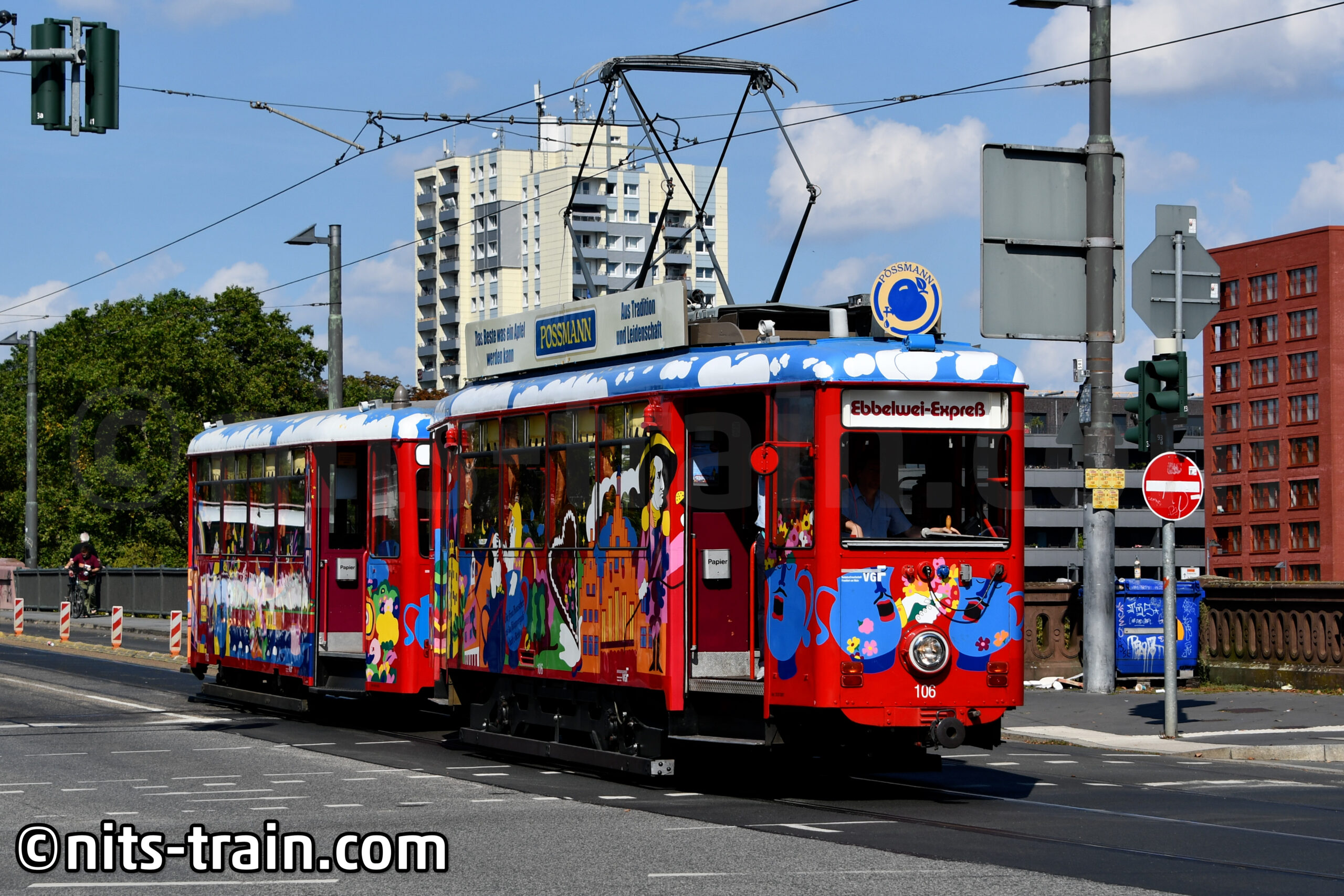 Ebbelwei-Expressとしても親しまれているK型は、フランクフルト市電の歴史上最後の2軸車両でもあり、戦後の市電再建に最も役立った形式。被災車両から組み上げられた車両もいる中、一部は完全新造されたものもある。